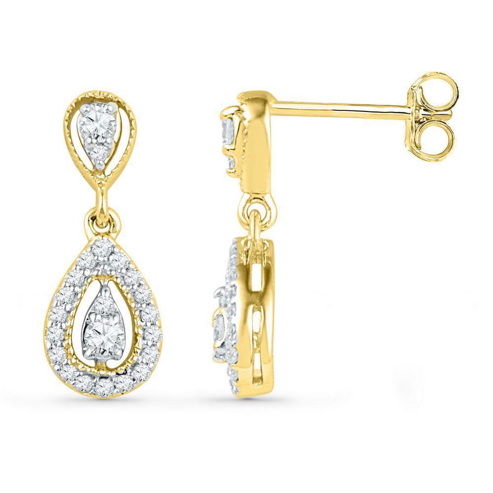10kt Yellow Gold Womens Round Diamond Teardrop Dangle Screwback Earrings 1/3 Cttw. | Combined diamond weight of 1/3 carats total weight represents a range of 0.30 - 0.36 cts. t.w.