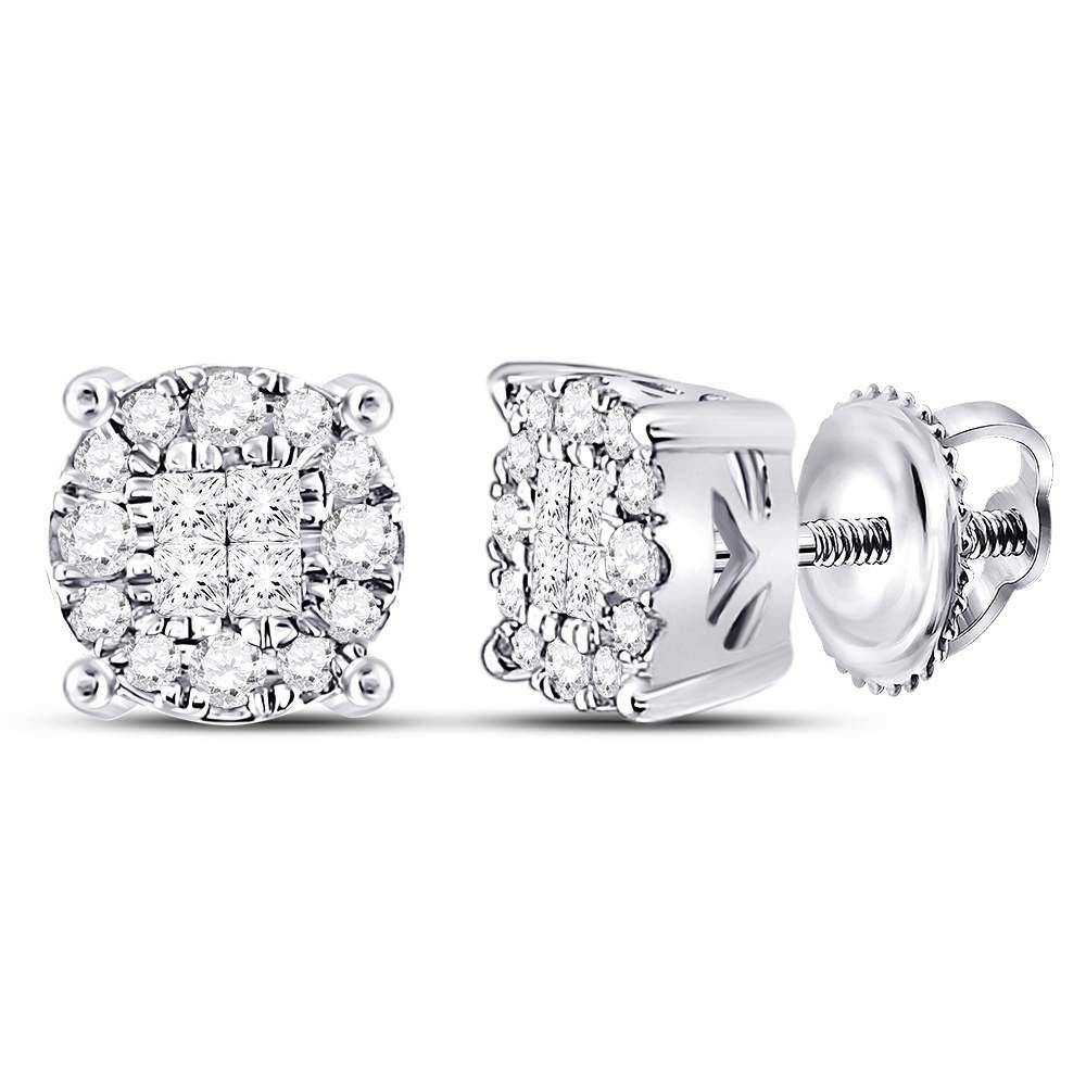 14K White Gold Princess Round Diamond Soleil Cluster Earrings 1/4 Cttw