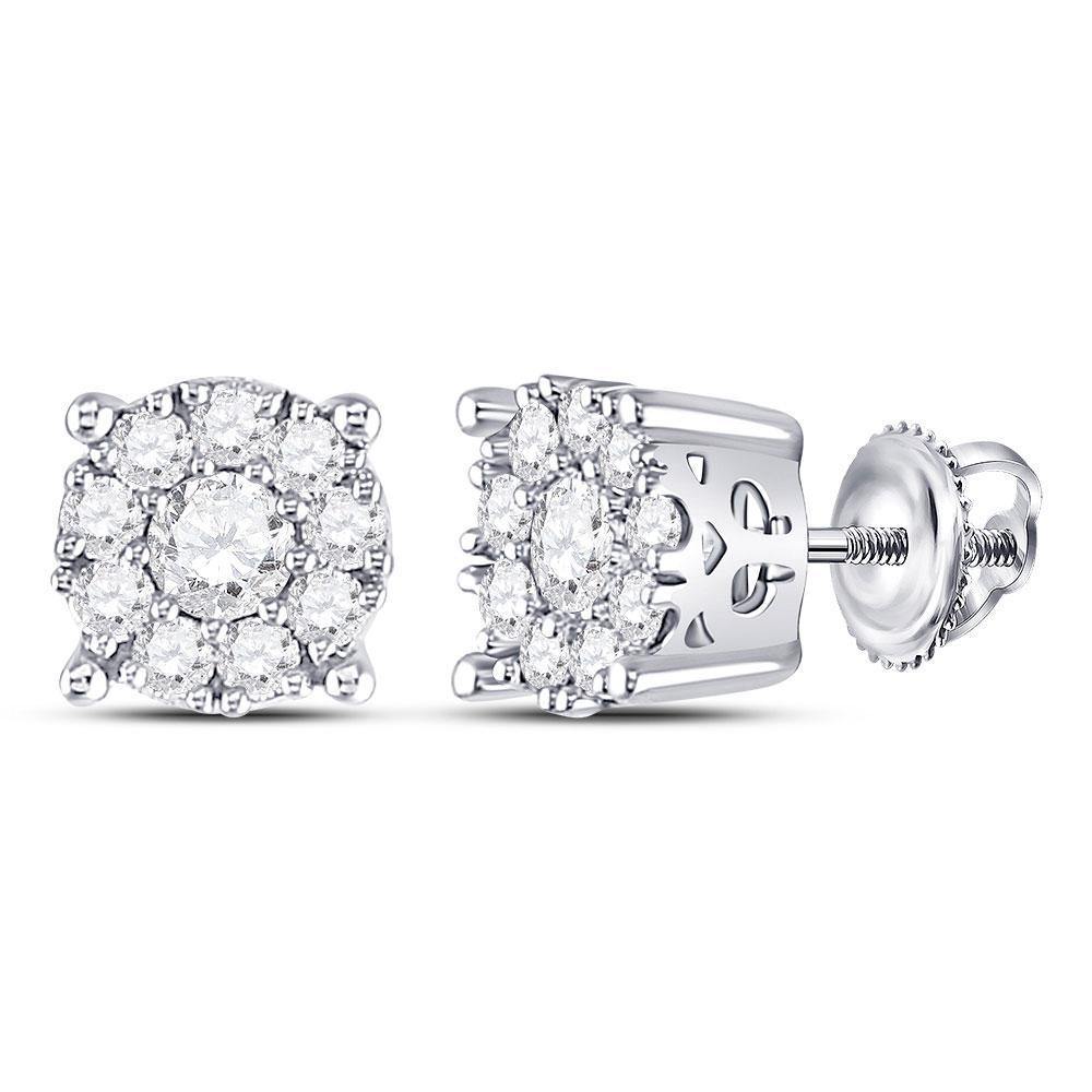 14kt White Gold Womens Round Diamond Cluster Stud Earrings 1.00 Cttw. | Combined diamond weight of 1.00 carats total weight represents a range of 0.95 - 1.17 cts. t.w.
