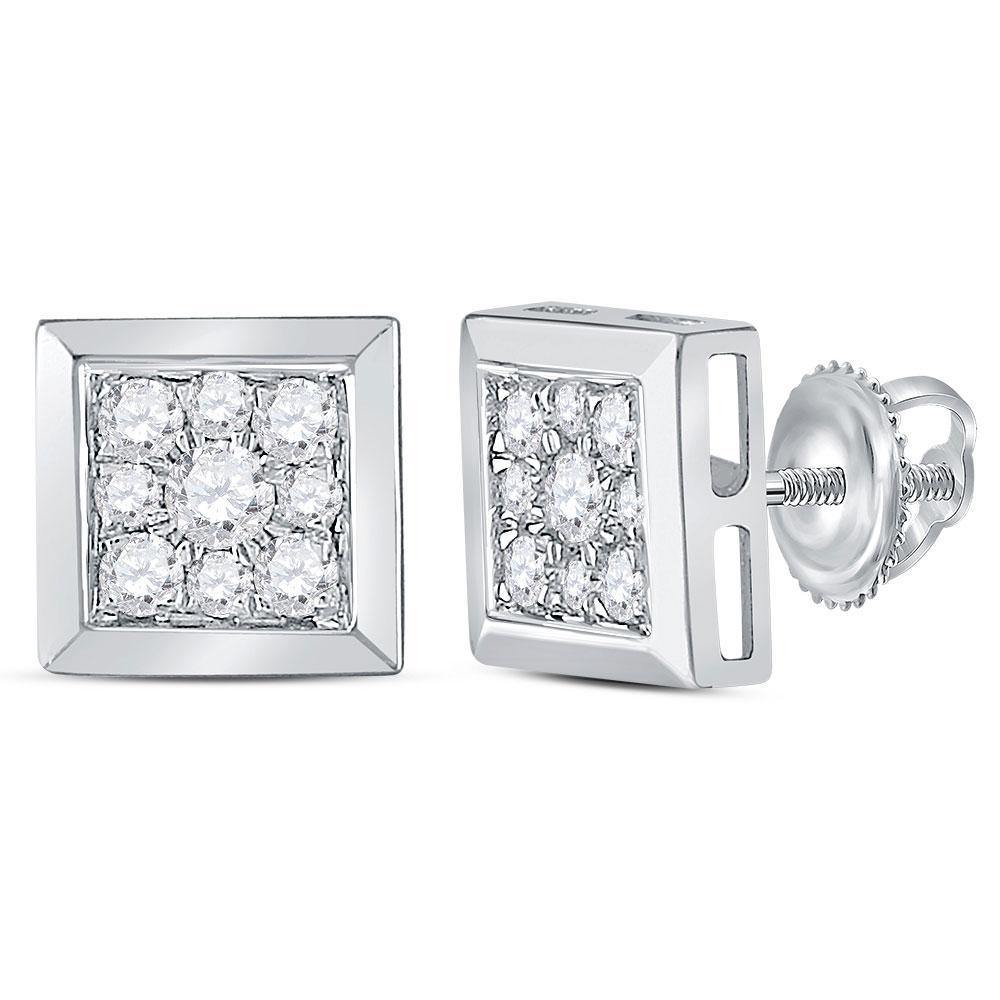 14kt White Gold Womens Round Diamond Square Cluster Stud Earrings 1/2 Cttw. | Combined diamond weight of 1/2 carats total weight represents a range of 0.46 - 0.57 cts. t.w.