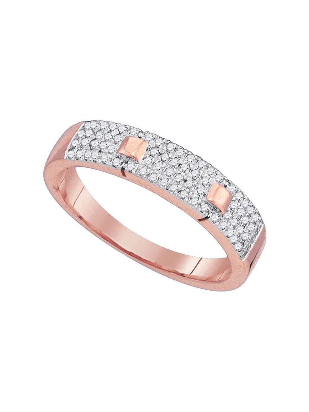 10kt Rose Gold Womens Round Red Color Enhanced Diamond Band Ring 1/6 Cttw