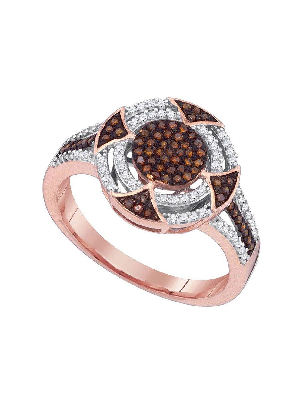 10kt Rose Gold Womens Round Red Color Enhanced Diamond Curl Band Ring 1/3 Cttw