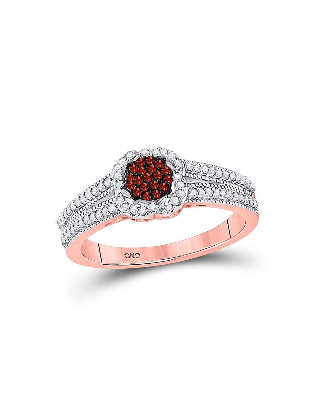 10kt Rose Gold Womens Round Red Color Enhanced Diamond Heart Ring 1/3 Cttw