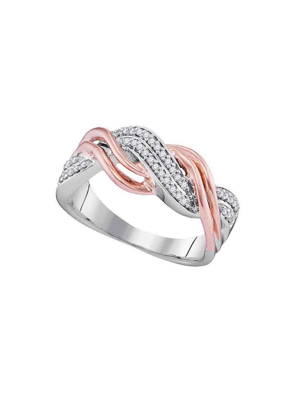 10kt Two-tone Gold Womens Round Diamond Twist Crossover Band Ring 1/6 Cttw