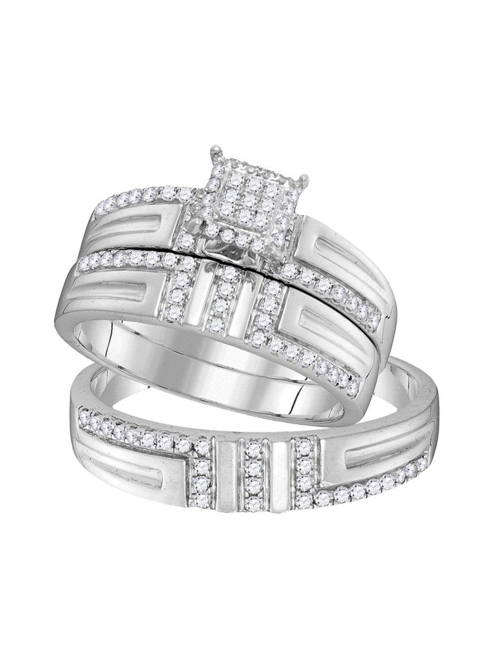 10kt White Gold His Hers Round Diamond Cluster Matching Wedding Set 1/2 Cttw