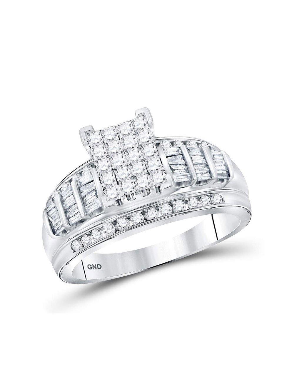 10kt White Gold Princess Diamond Cluster Bridal Wedding Engagement Ring 1 Cttw - Size 5
