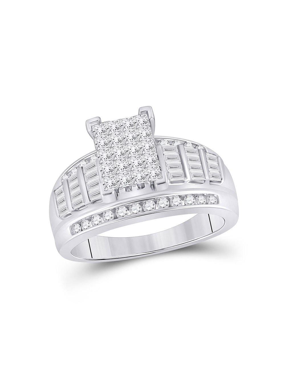 10kt White Gold Princess Diamond Cluster Bridal Wedding Engagement Ring 1 Cttw - Size 6