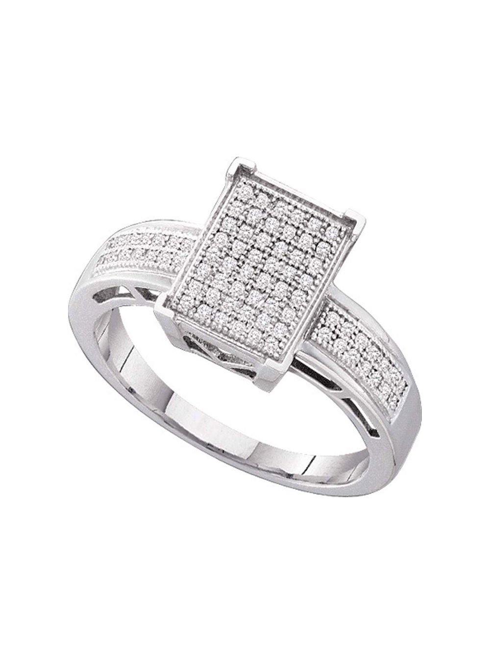 10kt White Gold Round Diamond Rectangle Cluster Bridal Wedding Engagement Ring 1/5 Cttw