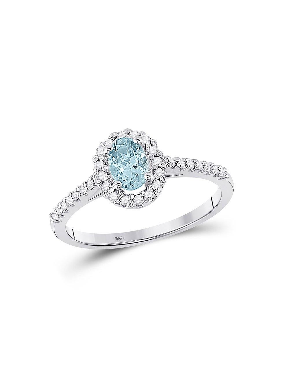 10kt White Gold Womens Oval Aquamarine Diamond-accent Solitaire Ring 1/5 Cttw