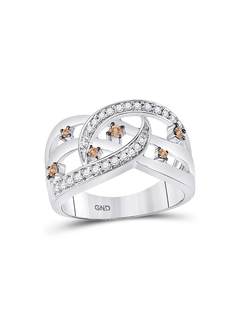 10kt White Gold Womens Round Brown Diamond Openwork Crossover Strand Band 1/3 Cttw
