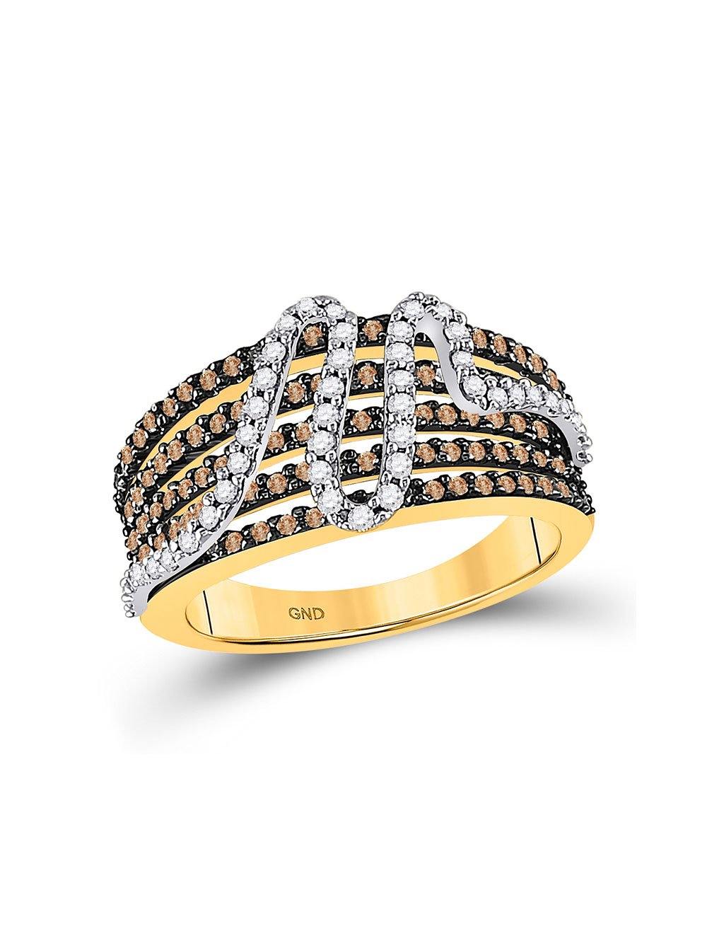 10kt White Gold Womens Round Brown Diamond Hexagon Cluster Ring 1 Cttw
