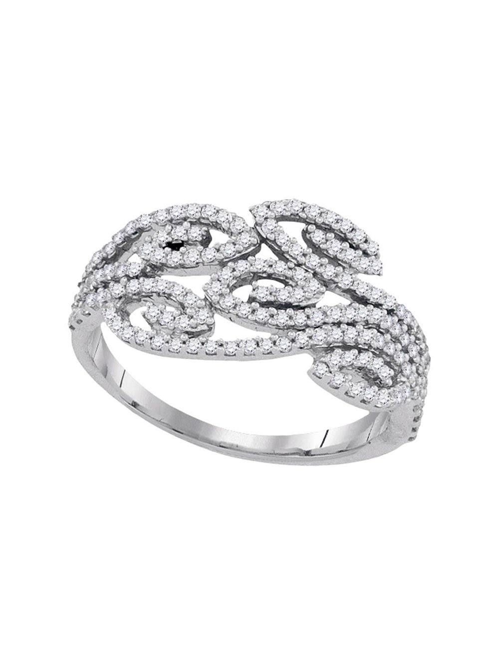 10kt White Gold Womens Round Diamond Curled Strand Band Ring 1/2 Cttw