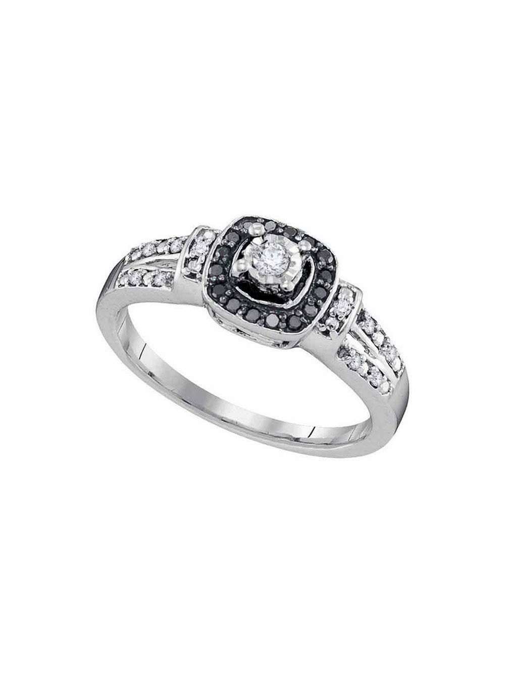 10kt White Gold Womens Round Diamond Solitaire Black Color Enhanced Ring 1/5 Cttw