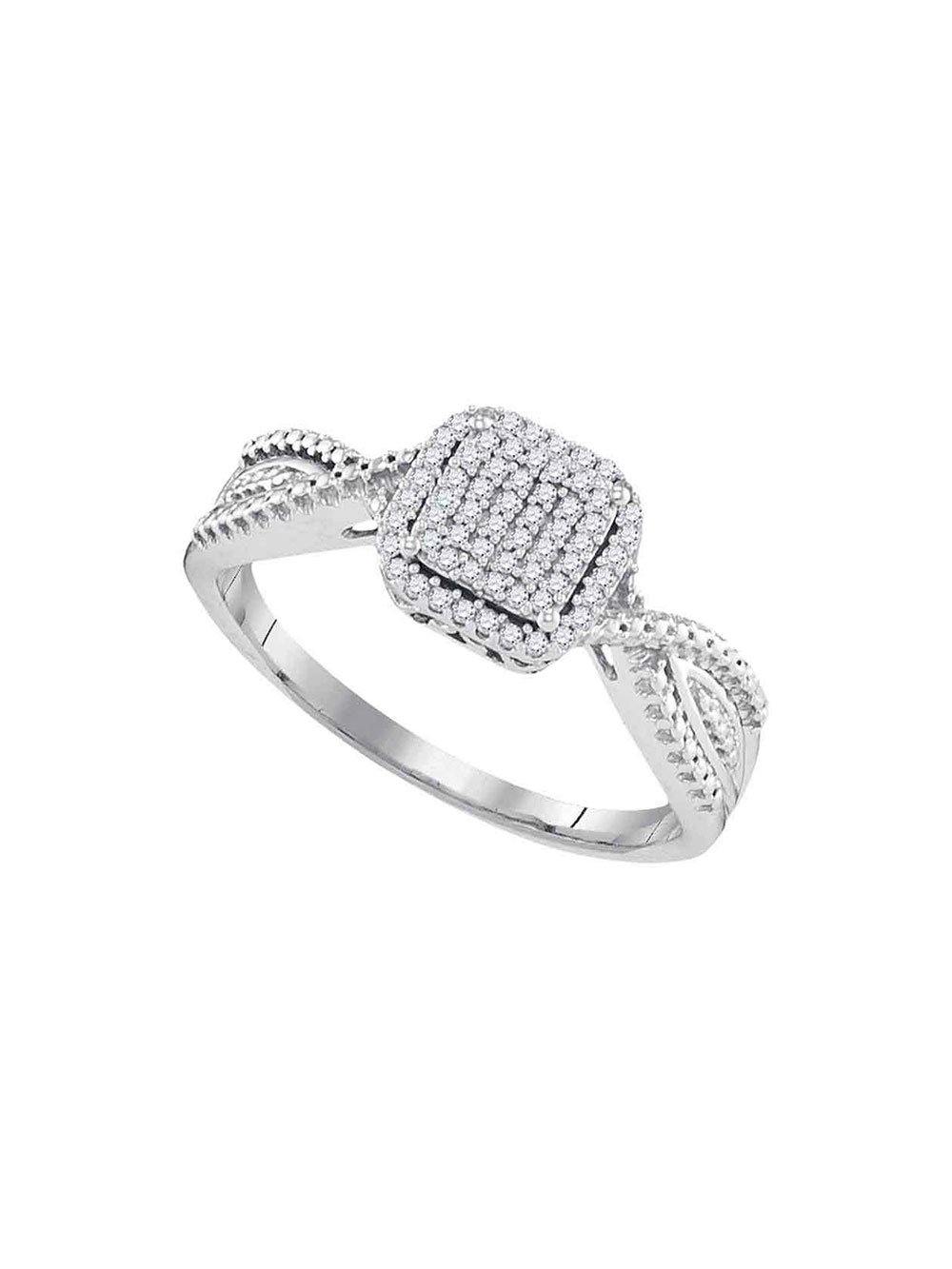 10kt White Gold Womens Round Diamond Square Cluster Ring 1/6 Cttw