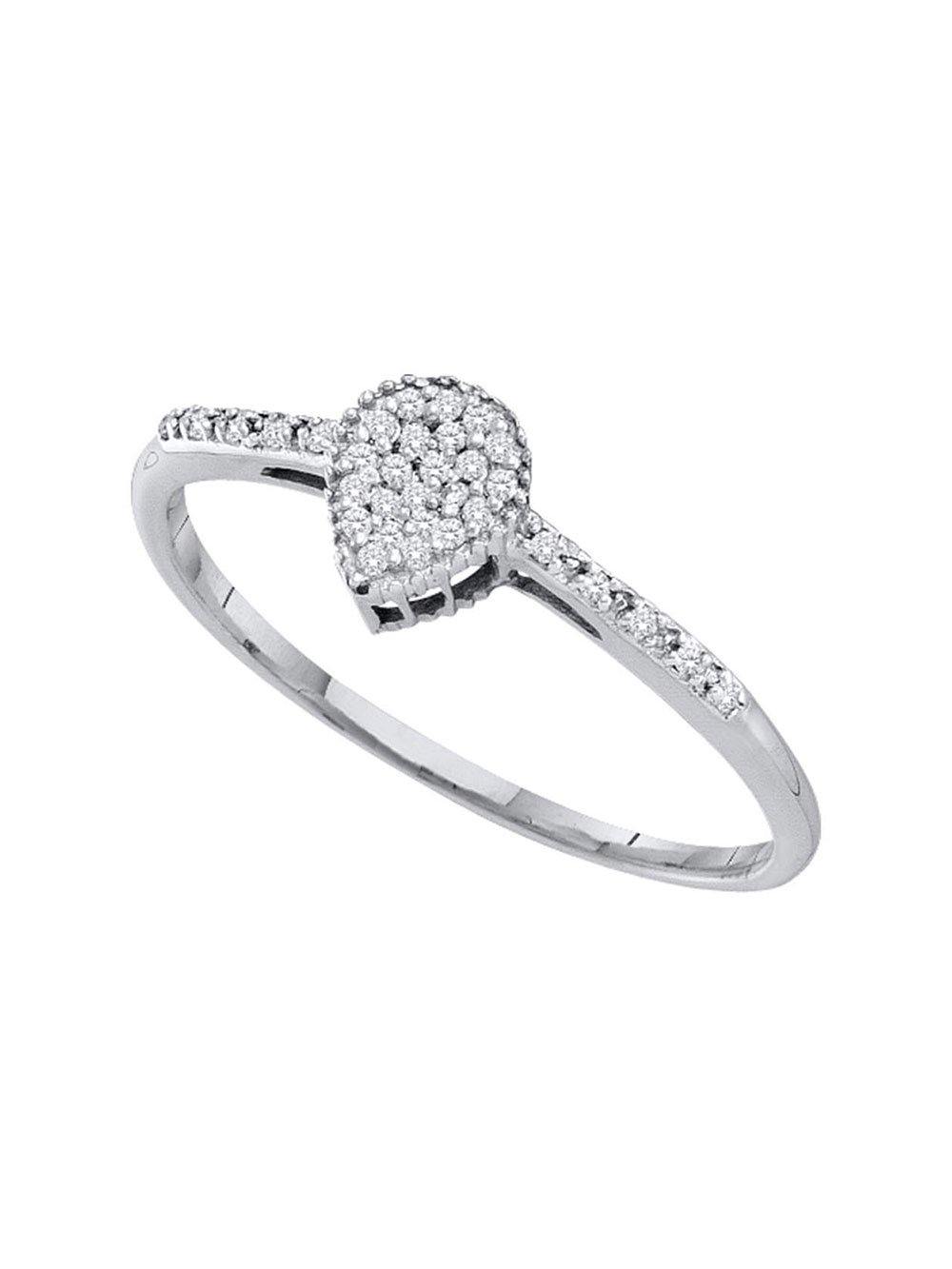 10kt White Gold Womens Round Diamond Teardrop Cluster Ring 1/20 Cttw