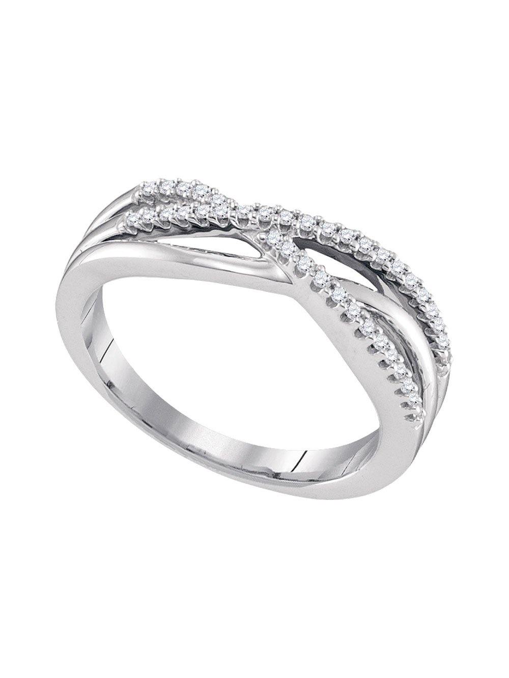 10kt White Gold Womens Round Diamond Triple Strand Crossover Band Ring 1/6 Cttw