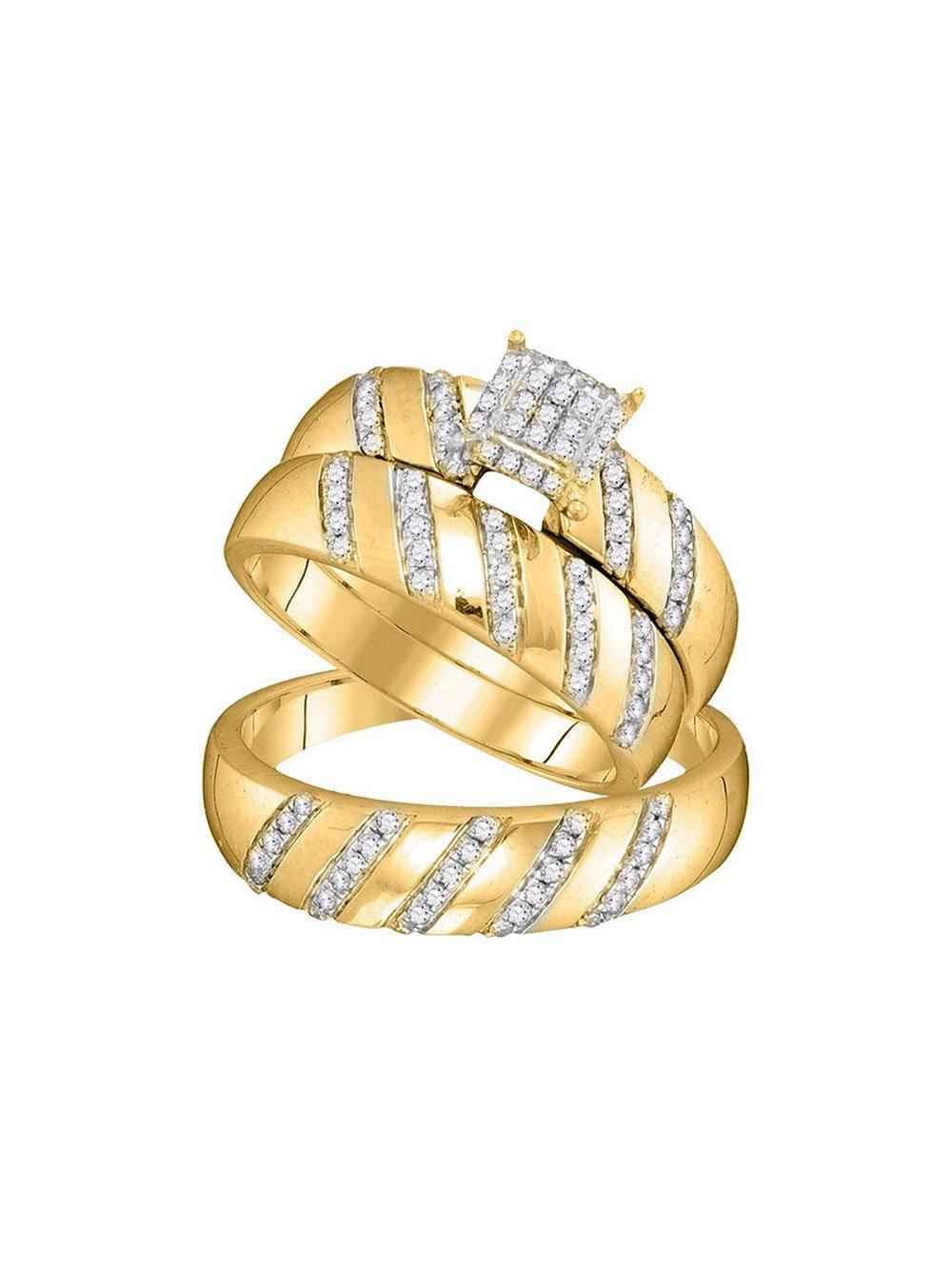 10kt Yellow Gold His Hers Round Diamond Cluster Matching Wedding Set 1/2 Cttw