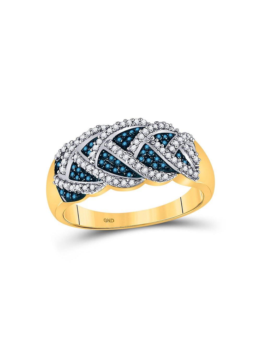 10kt Yellow Gold Womens Round Blue Color Enhanced Diamond Braid Band Ring 3/8 Cttw
